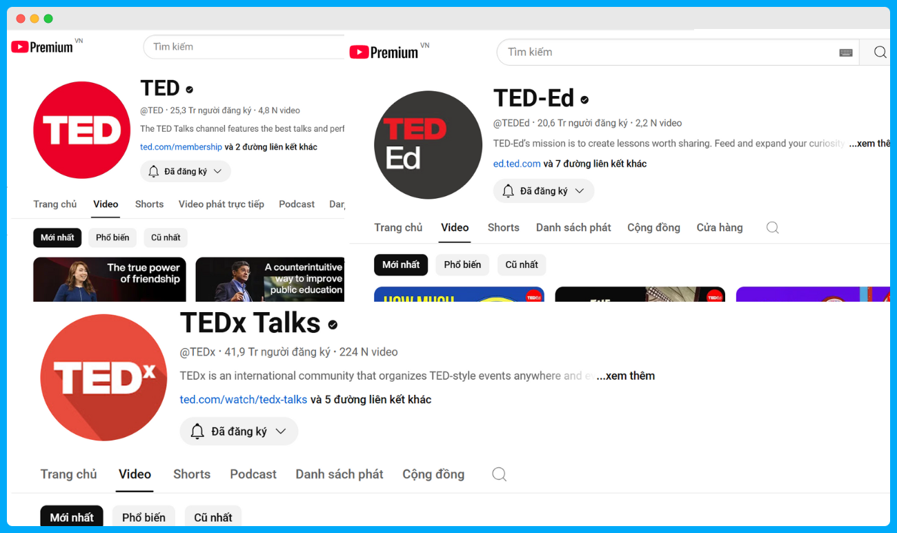 TED là tổ chức giáo dục lâu năm, có uy tín và có sức ảnh hưởng tầm cỡ quốc tế. Mỗi kênh Youtube của TED đều có vài chục triệu lượt đăng ký.