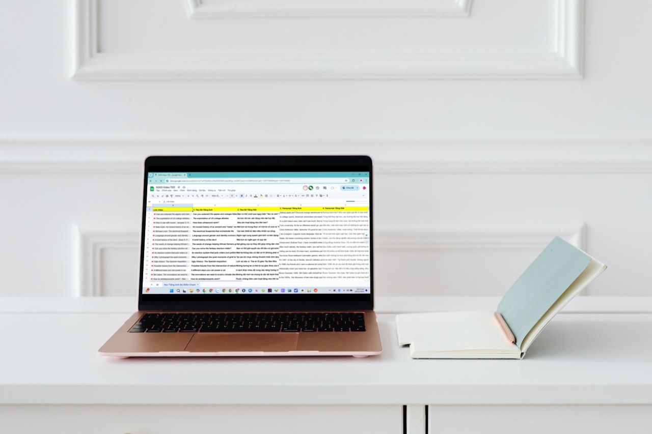 Trong file này, mình liệt kê ra 10 cột, bao gồm: link video, tiêu đề tiếng Anh, tiêu đề tiếng Việt, transcript tiếng Anh, transcript tiếng Việt, cụm từ, giải thích ngữ pháp, bài tập trắc nghiệm, bài tập điền từ và checkbox theo dõi quá trình học tập.